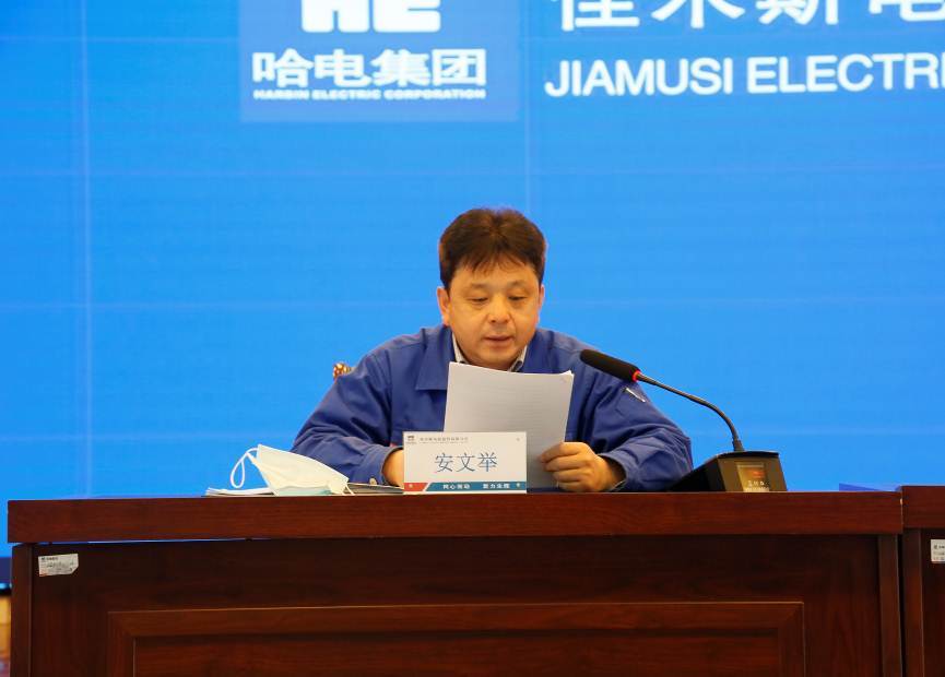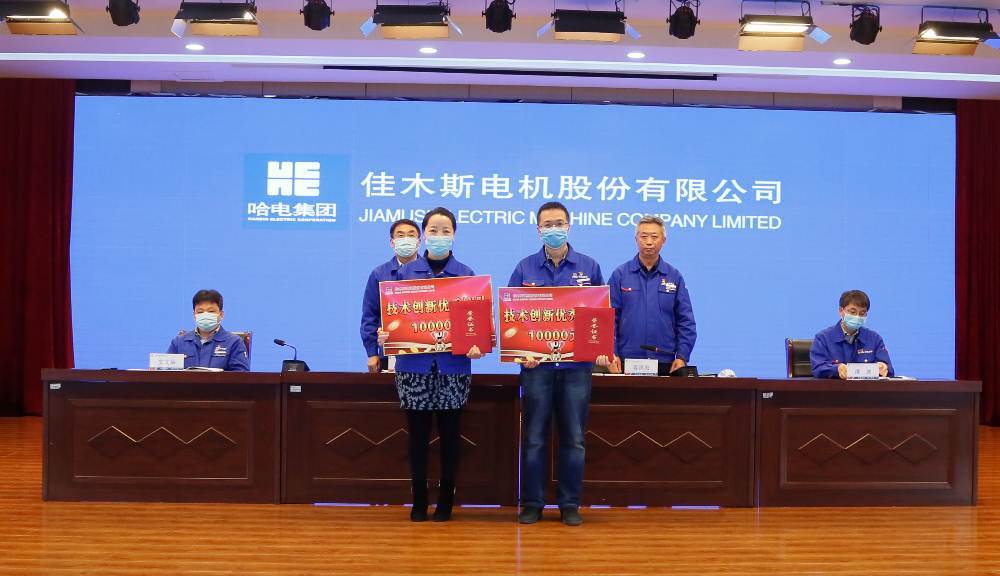 副總經(jīng)理安文舉宣讀了《哈爾濱電氣集團佳木斯電機股份有限公司關(guān)于2020年科技工作表彰獎勵的決定》,表彰了為公司科技事業(yè)做出突出貢獻的先進集體和先進個人,并為獲獎代表頒獎。