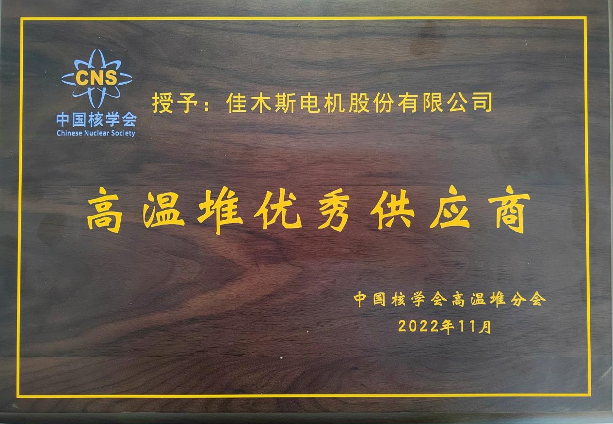 新年伊始,哈電集團(tuán)佳電股份榮獲2022年度 中國核學(xué)會(huì)高溫堆分會(huì)“高溫堆優(yōu)秀供應(yīng)商”榮譽(yù)稱號。 2022年12月7日,石島灣高溫氣冷堆核電站示范工程順利實(shí)現(xiàn)“雙堆初始滿功率”,首次實(shí)現(xiàn)了“雙堆帶一機(jī)”...